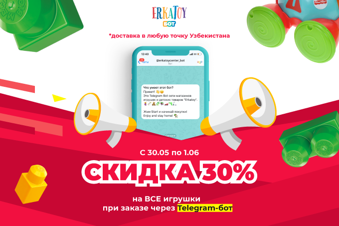 Воспользоваться акцией вы также можете в нашем Телеграм-боте t.me/erkatoycenter_bot.