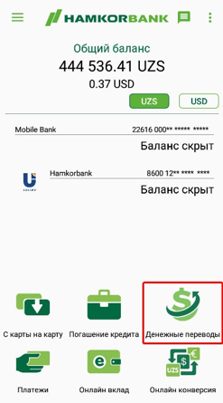С помощью новой функции в приложении Hamkor Mobile перевод можно зачислить прямиком на любую из международных карт Hamkorbank. Для этого вам потребуется оформить карту Visa или UnionPay от Hamkorbank и совершить несколько действий в приложении Hamkor Mobile.