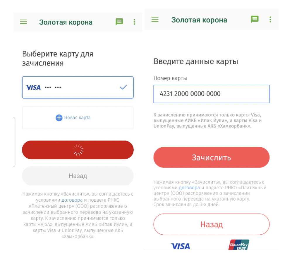 Если вы впервые получаете перевод дистанционно, вам потребуется добавить карту, ввести ее данные и нажать на кнопку «Зачислить», после чего перевод будет моментально зачислен на вашу карту.