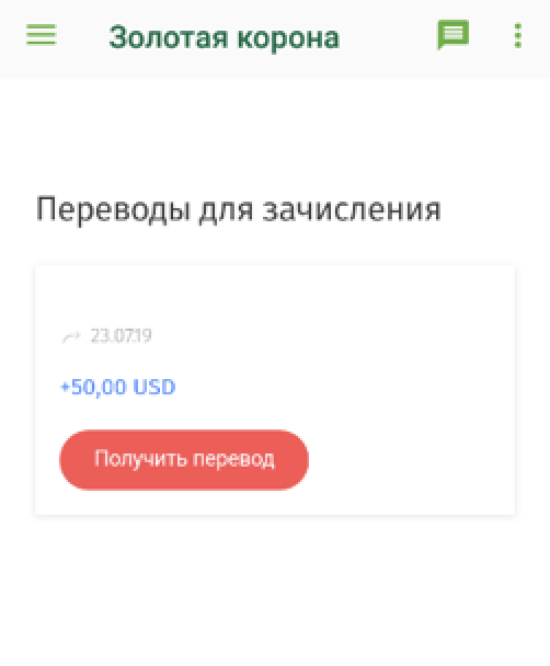 После этого, в окне отобразятся данные отправителя и сумма отправленных денег, после чего вам нужно лишь нажать на кнопку «Получить перевод»: