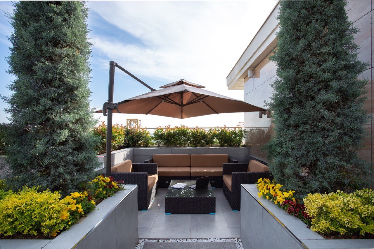 Лаунж зона — укромное и тихое пространство, идеально подходящее для работы за ноутбуком или чтения книг на свежем воздухе.