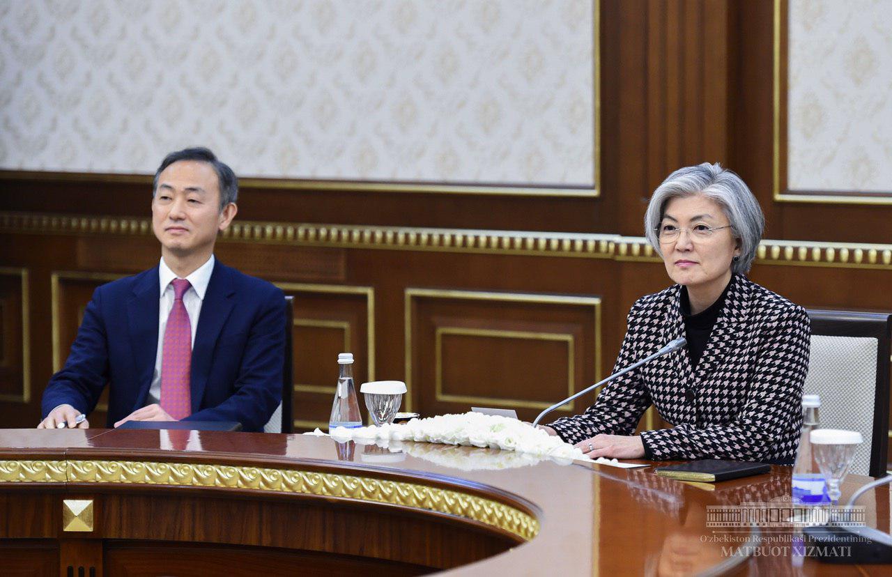 Сегодня, 18 апреля, Президент Республики Узбекистан Шавкат Мирзиёев принял министра иностранных дел Республики Корея Кан Гён Хва, пребывающую в нашей стране с визитом.