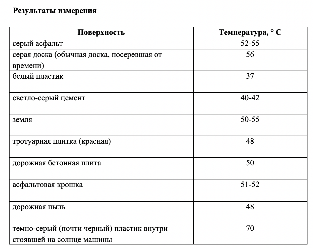 Разброс значений означает, что при разных измерениях на одинаково выглядящих поверхностях была получена разная температура.