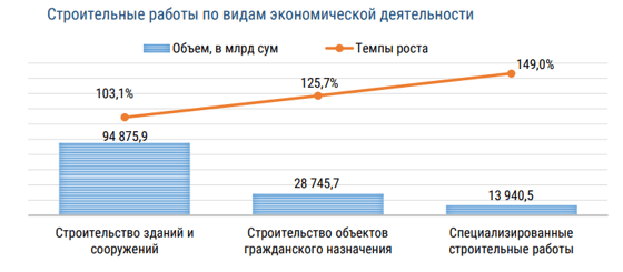 - строительство зданий и сооружений — 94,8 трлн сумов;
