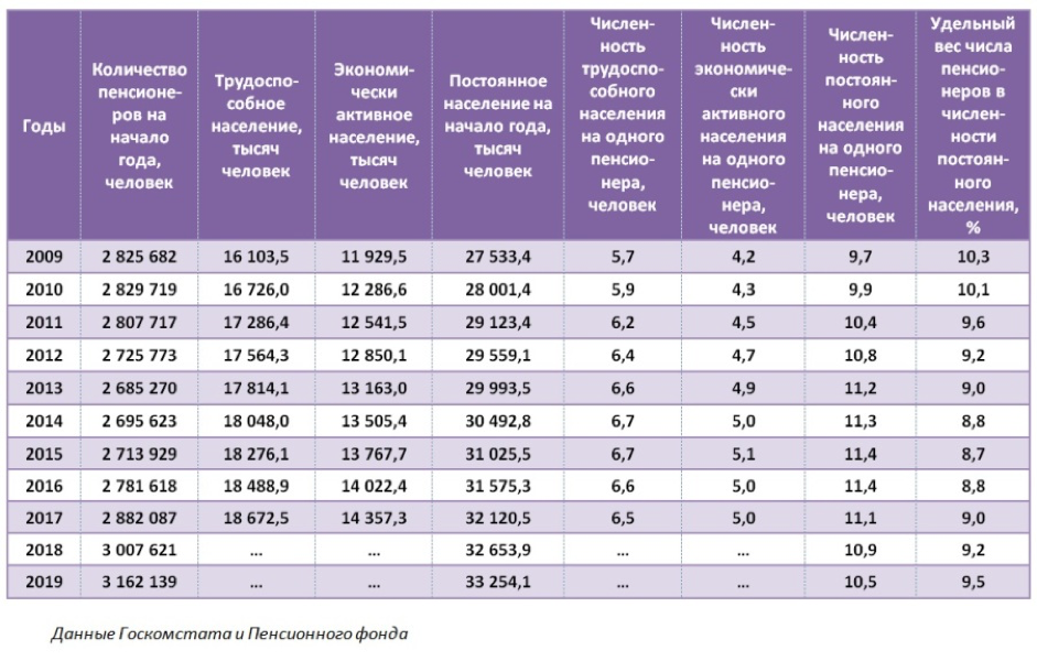 У нас показатель удельного веса числа лиц, получающих пенсию, в общей численности населения составил на начало 2019 года 9,5% (по данным Госкомстата это показатель составил 10,2%). Разница 0,7 процентных пункта может быть объяснена тем, что часть лиц пенсионного возраста, проживающих в республике, не получает пенсии (например, получатели социальных пособий). Методика статистических органов по определению возрастной структуры населения базируется на данных МВД, органов ЗАГСа и переписи населения, а не на данных о получателях пенсий.
