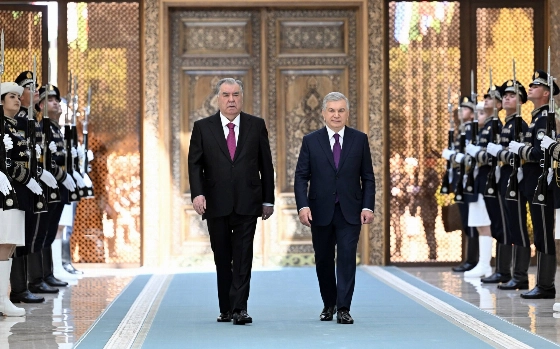 Были подняты государственные флаги двух стран и выстроен почетный караул. В исполнении военного оркестра прозвучали гимны Узбекистана и Таджикистана.