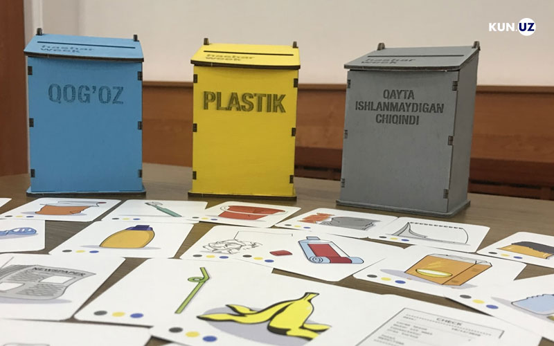 Детям в виде маленьких лекций даётся информация о перерабатывающихся и не перерабатывающихся отходах. Их учат сортировать карточки с названиями наиболее распространенных бытовых отходов в Узбекистане на бумажные, пластиковые и не подлежащие переработке отходы в ящиках для игрушек с экологически чистыми продуктами. А в следующем этапе они научатся сортироваться настоящие отходы в большие ящики,