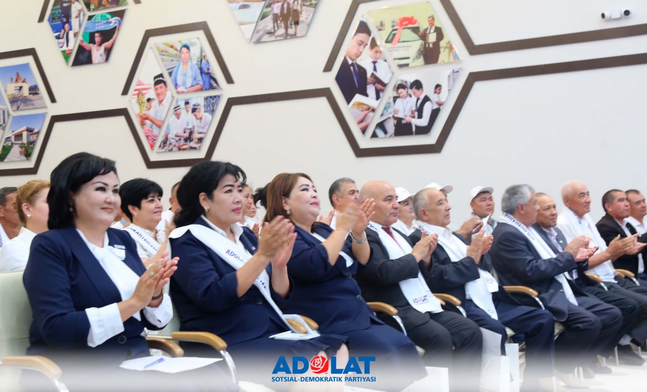 В начале встречи Главным доверенным лицом кандидата в Президенты Робахон Махмудовой Иномжоном Кудратовым была предоставлена подробная информация о кандидате. Затем Робахон Махмудова, кандидат в президенты Республики Узбекистан от СДПУ «Адолат» подробно ознакомила избирателей с приоритетными целями своей предвыборной программы.