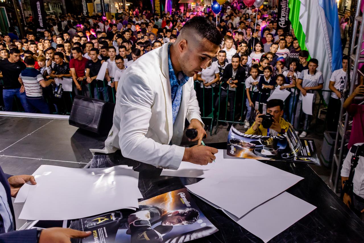 В качестве организатора мероприятия выступила Торговая марка Adrenaline Rush, поэтому на площадке царил дух абсолютной энергии. Сотни поклонников собрались на Ташкентском бродвее, чтобы лично поздравить нашего чемпиона с ошеломляющей победой, которую он одержал за 30 секунд в бою с экс-чемпионом мира Дарлисом Пересом.