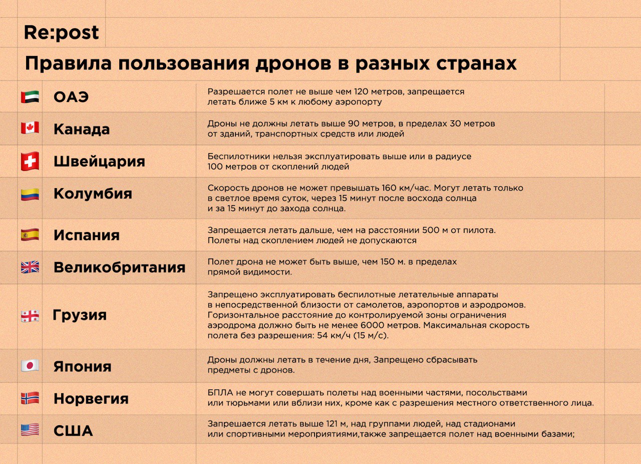 Repost узнал, в каких странах запрещается использование дронов, а в каких БПЛА служат развитию различных сфер.