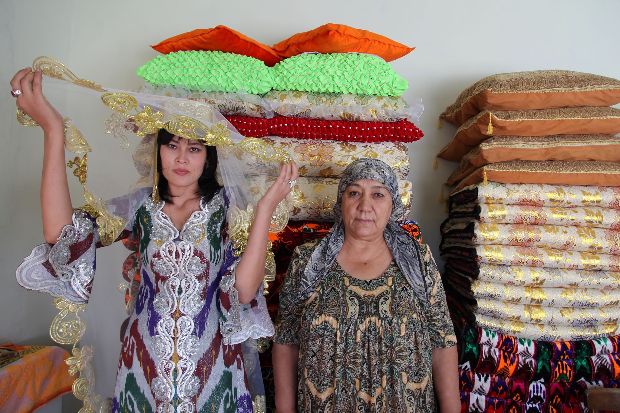 Вот, сидят женщины, которые должны засвидетельствовать, что девушка была девственницей. Я думаю, что давным давно, когда была принято женить еще детей, наверняка роль этих «свидетельниц» могла быть иной и более гуманной. Раньше существовали специальные обряды, где в игровой форме женщины подсказывали молодоженам, что и как нужно делать. Сейчас это может показаться пошлым, но тогда это было нормально. Сейчас вы одеваетесь в белые платья, бросаете цветы, как в Европе, а потом говорите мне, что я опошляю.