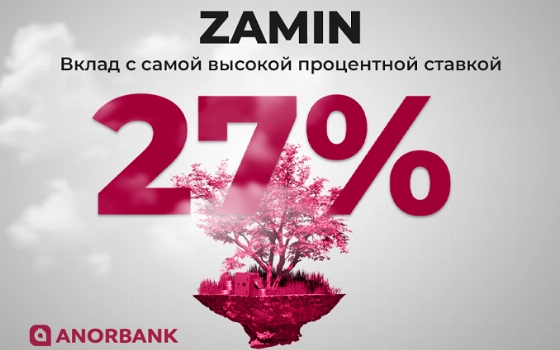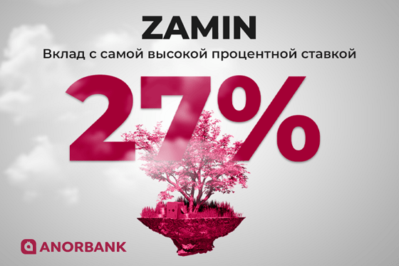 ANORBANK предоставляет возможность открыть сумовой вклад ZAMIN с самой высокой процентной ставкой 27% в честь своего 3-хлетия только до 31 августа 2023 года.