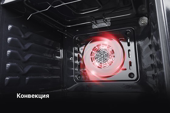 Говоря о равномерном распределении, стоит сказать так же о режиме конвекции. Благодаря конвекции, температура в духовой камере распределяется равномерно на всех уровнях. Для чего это нужно? К примеру, для выпечки. Одинаковая температура в духовке прогревает выпечку равномерно, тесто получается воздушным и румяным. Выпечка отлично пропекается как снаружи, так и изнутри.