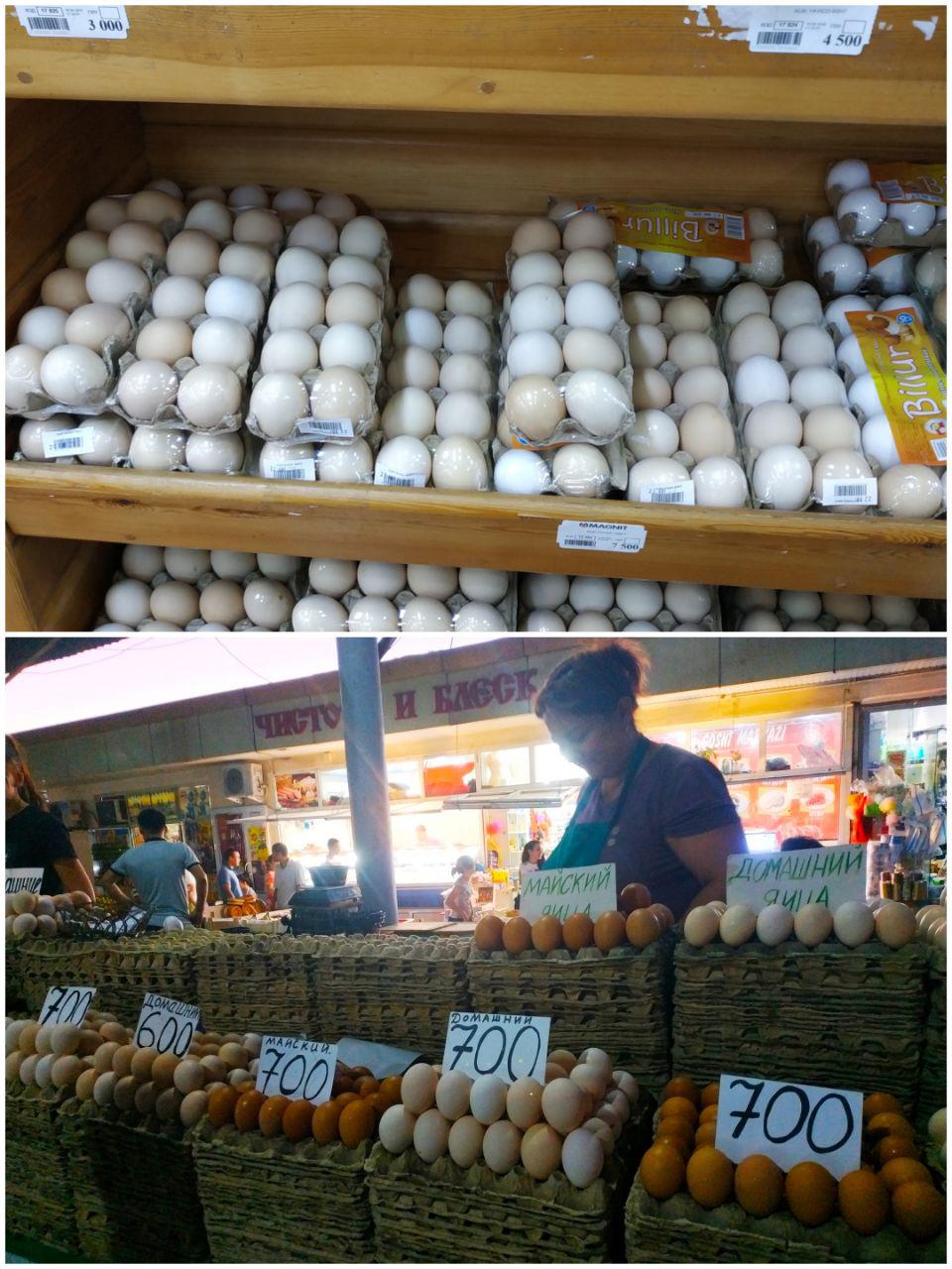 Цены на куриные яйца отличаются на 50 сум. В супермаркете они дороже. 78% опрошенных людей утверждают, что в супермаркете порой невозможно найти домашние яйца, а фабричные обладают светлым желтком и малой массой.