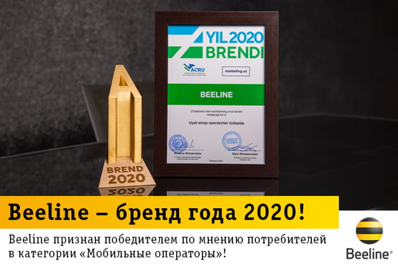 Beeline Uzbekistan благодарит каждый голос за признание работы компании. Эта победа мотивирует и впредь соответствовать столь высокой оценке, продолжая развивать самые трендовые предложения, оставаться самым лучшим и любимым брендом!