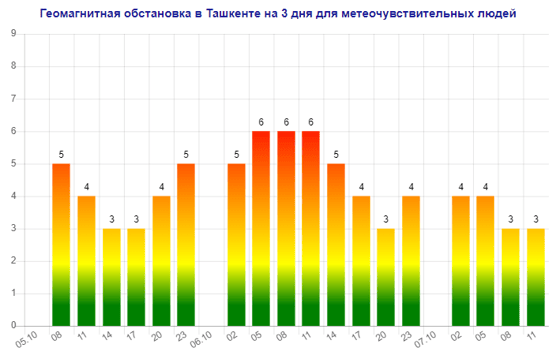 В воскресенье в Ташкенте ожидается магнитная буря мощностью шесть баллов, следует из данных сервиса Meteonova.