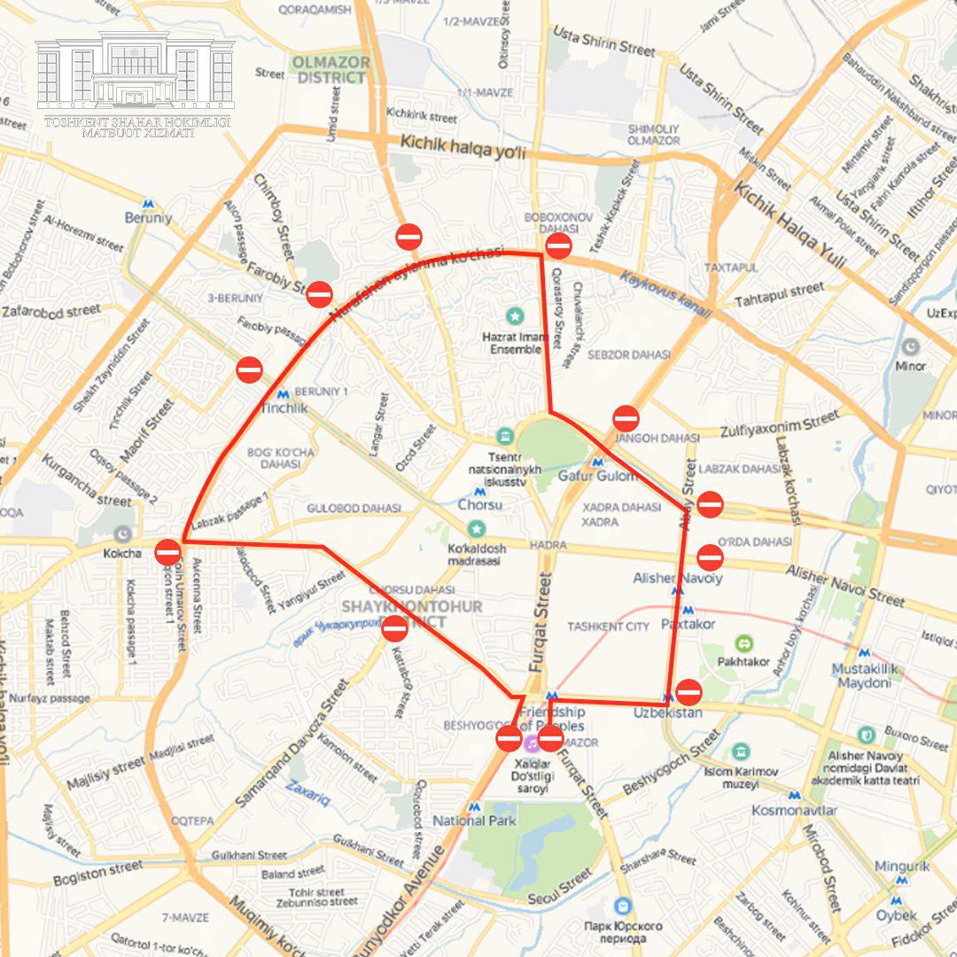 30 августа в связи с проведением спортивного мероприятия «Вечерняя велопрогулка» по направлению: площадь «Дружбы народов» — комплекс Сузук-ата — комплекс Хазрати Имам, центральные улицы будут перекрыты, пишет пресс-служба хокимията.