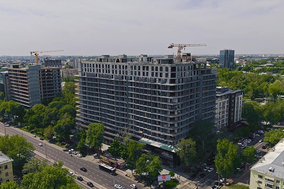 Работы на объекте переходят в более динамичный режим. На данный момент завершены монолитные работы, установлены оконные рамы и возведены межквартирные стены. В ближайшее время команда приступит к монтажу фасадных конструкций и инженерных систем. Работы параллельно проводятся как в жилой, так и в коммерческой зоне. Сдача запланирована на 2025-й год.