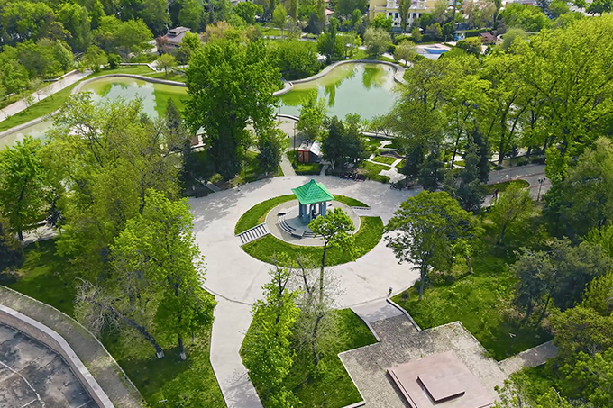 • двор на уровне 4-го этажа, с видом на парк Бабура;