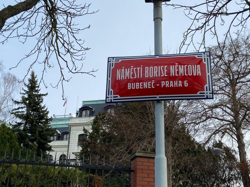 Табличка на площади Бориса Немцова в Праге