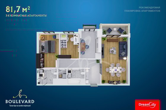 Boulevard — это уникальный городской квартал, расположенный на 110 000 кв м территории Tashkent City. Масштабный комплекс предусматривает все необходимое для комфортной жизни, работы и полноценного отдыха: высококлассные апартаменты, разнообразие площадей и планировок, благоустроенная территория, уникальная шопинг-авеню, продуманная инфраструктура и огромный парк в двух шагах от апартаментов.