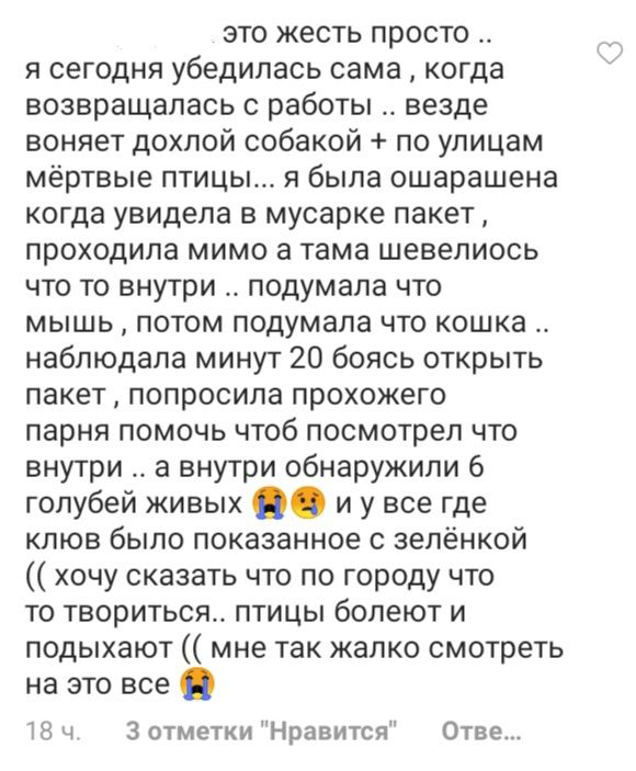 Ниже представлены сообщения самаркандцев о смерти своих питомцев. Мы публикуем только 10% от общего количества найденных и поступивших в нашую редакцию рассказов о смерти животных за последнюю неделю. Фотографии смертей животных и трупов мы не готовы публиковать из-за этических соображений.
