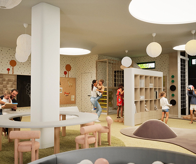 В комплексе возводятся отдельных два здания — «клубные зоны». Это специальные пространства для резидентов с бассейном, фитнес-залом, коворкингом, детской игровой комнатой, банкетным залом и другими комнатами отдыха.