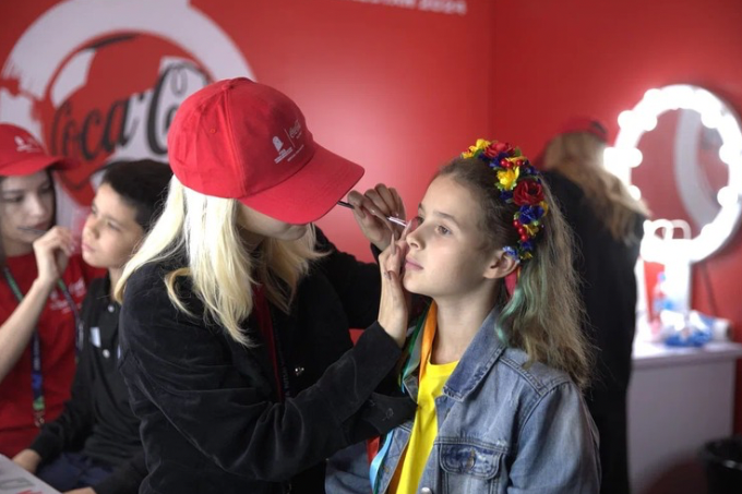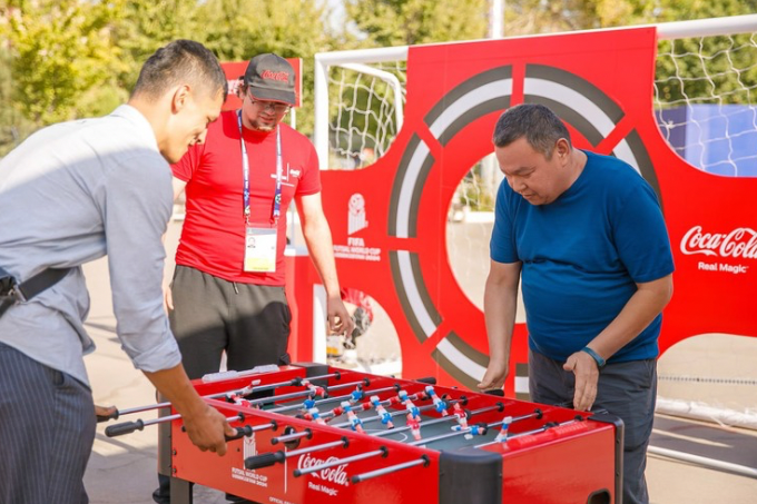 Компания организовала уникальную фан-зону, где посетители могли посостязаться в настольный футбол, попробовать себя в роли футболиста и забить гол в ворота, нанести тематический грим в make-up зоне, получить памятные фотографии в insta-зоне и просто отдохнуть под музыку вместе с Coca-Cola.