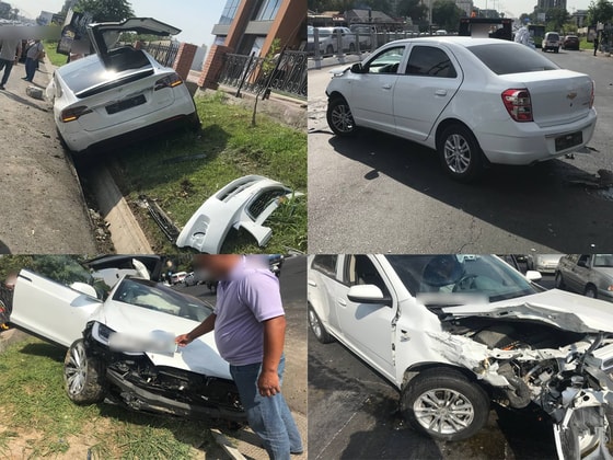 Авария произошла 6 августа около 08:30 на пересечении улиц Мукими и Арнасай. Автомобили столкнулись передними частями. В результате ДТП Tesla вылетела с проезжей части в арык.