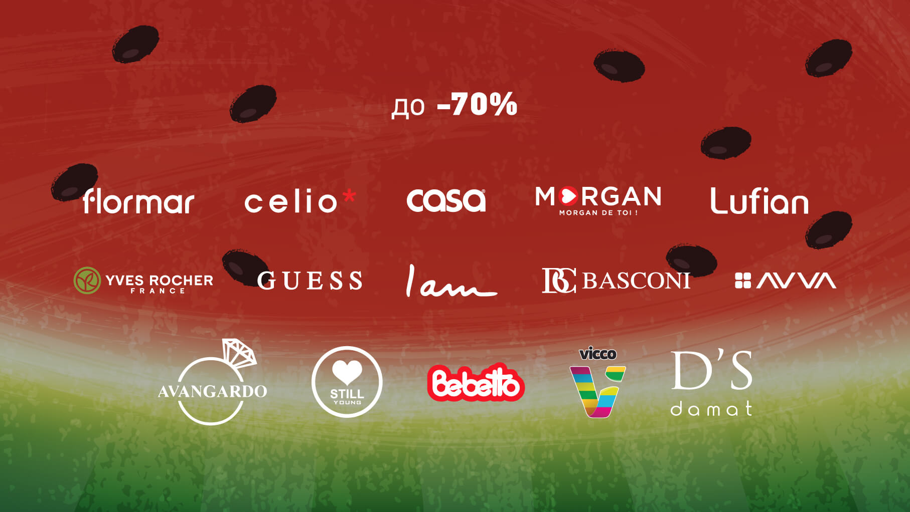 - Celio, Guess, Yves Rocher, Morgan, I am, Casa, Flormar – гарантированные скидки на всё от 30% до 70%