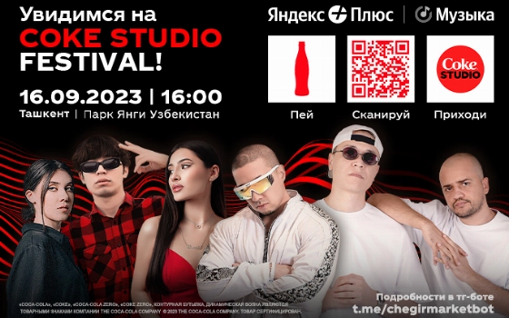 16 сентября 2023 года на Coke Studio Fest в парке «Новый Узбекистан» на одной сцене встретятся локальные и мировые звезды: дуэт Artik & Asti, Andro, Рухсора Эмм, Massa, Daler Ametist, Далимжанов, Сабина Мустаева, Dj Bella, Dj Indigo, а также всемирно известный хедлайнер, имя которого будет объявлено позже.