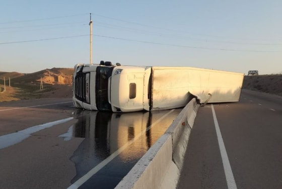 Уточняется, что 22 апреля в 06:22 на 269 км автодороги А-373 водитель грузовика DAF не справился с управлением. Машина врезалась в разделитель, перевернулась и перекрыла дорогу.