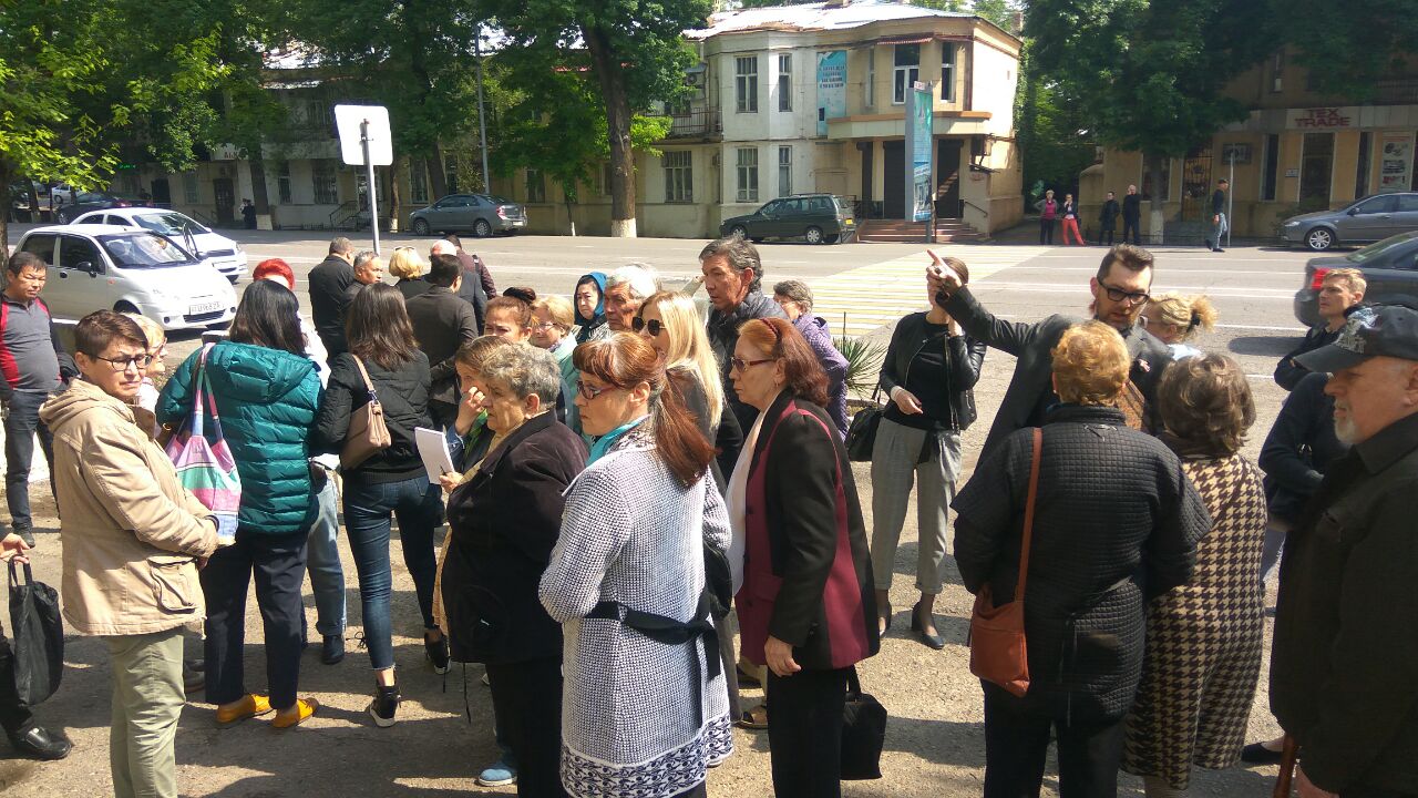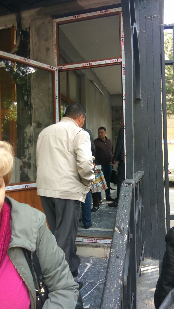Примерно к 10:15 истец Ким и ответчики Замановы, жильцы дома 45 и представители СМИ собрались перед воротами территории суда. Истец Ким зашел на территорию и отправился в здание суда, однако ни жильцов дома, ни представителей СМИ, ни ответчиков Замановых охранники не пропустили. Затем они ссылались на отсутствие мест в кабинете, где будет проходить слушание.