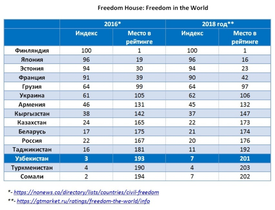 Все эти страны попали в специальную категорию «Худшие из худших». Из республик Средней Азии туда не включили только Кыргызстан и Казахстан.