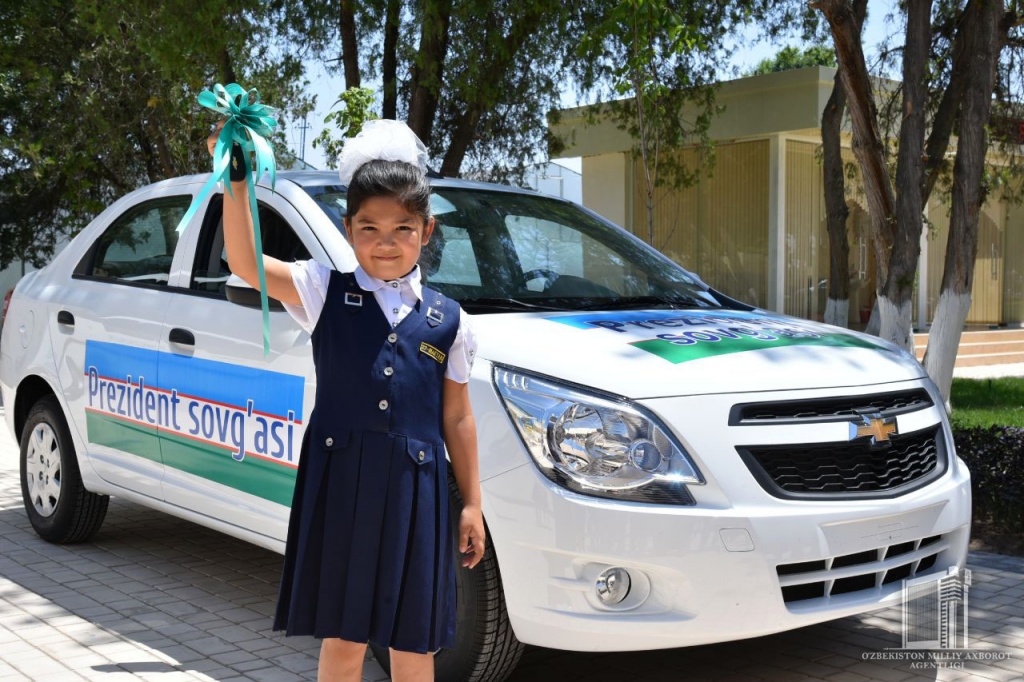 В ходе официального визита в Ташкентскую область глава государства Шавкат Мирзиёев подарил автомобиль отцу девочки, которая сочинила стихотворение о пяти приоритетных направлениях развития Узбекистана в 2017-2021 годах.
