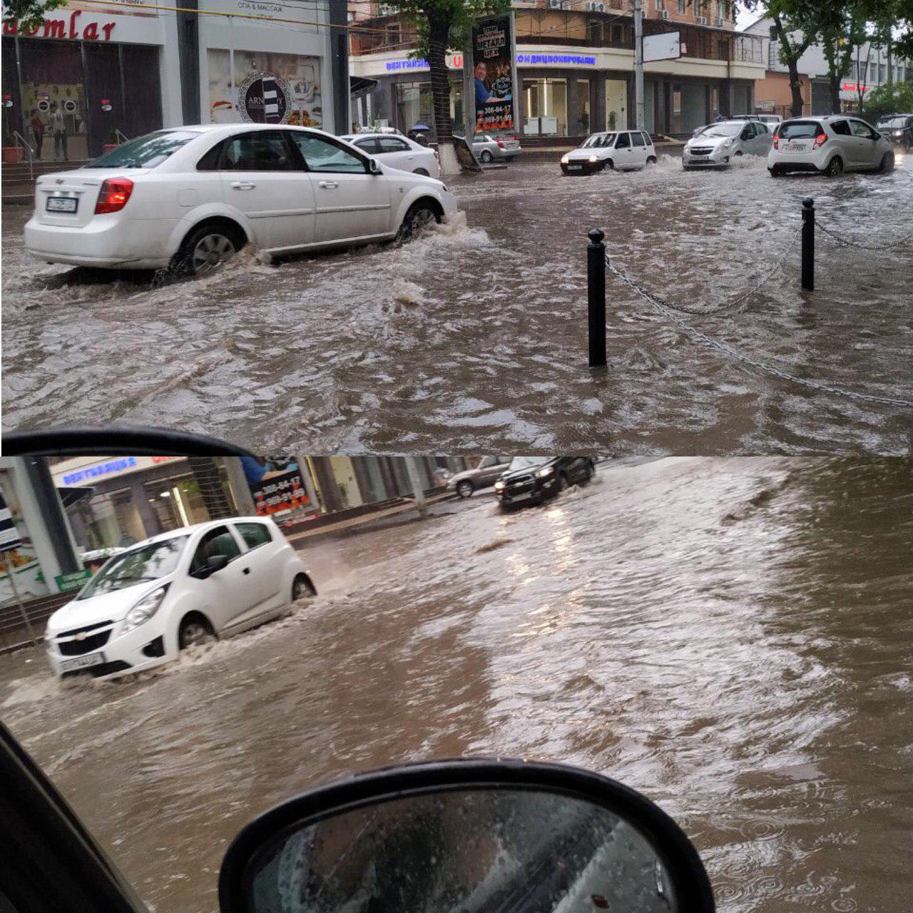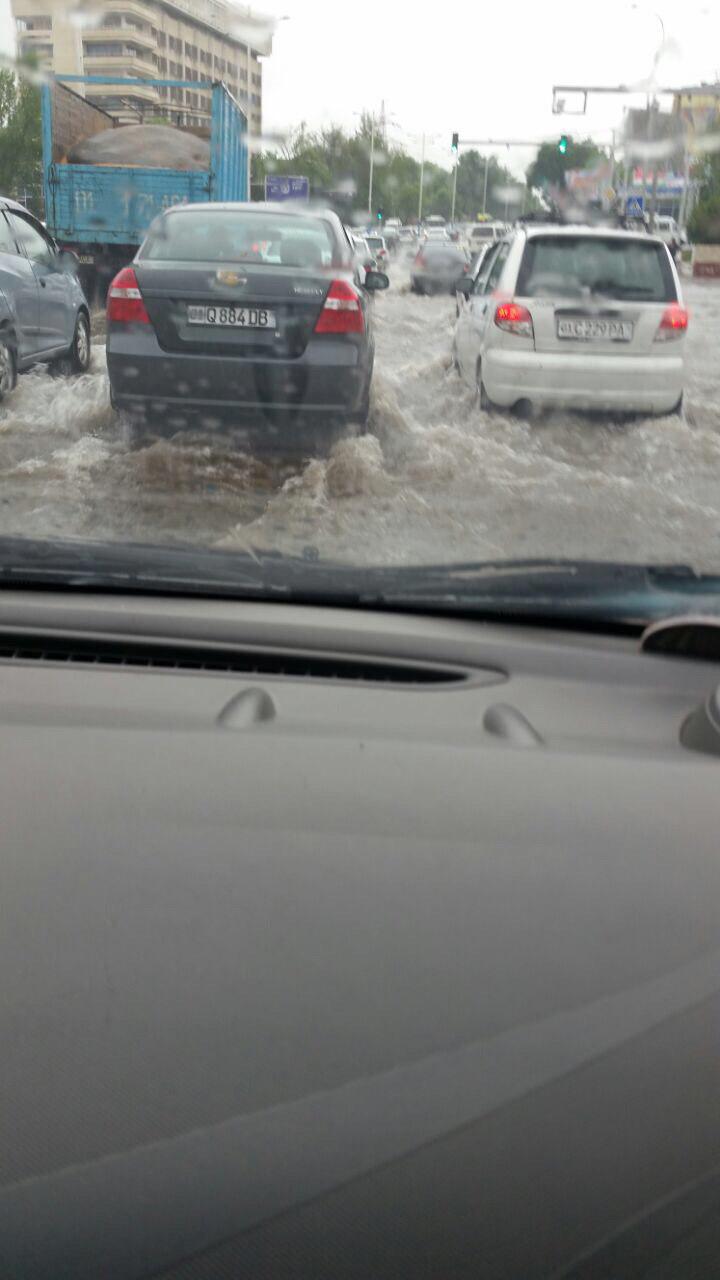 В Ташкенте из-за ливня затопило ряд улиц (фото)