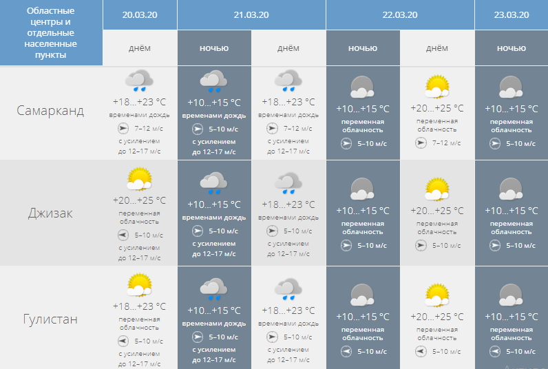 Узгидромет опубликовал прогноз погоды на выходные по всей республике: