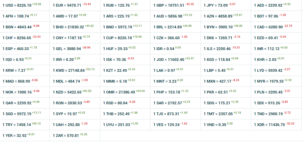 Центробанк Узбекистана сообщает о том, что с 23 октября новый курс доллара по сравнению с предыдущей неделей подорожал на 18,06 сум и равен 8226.10 сум.