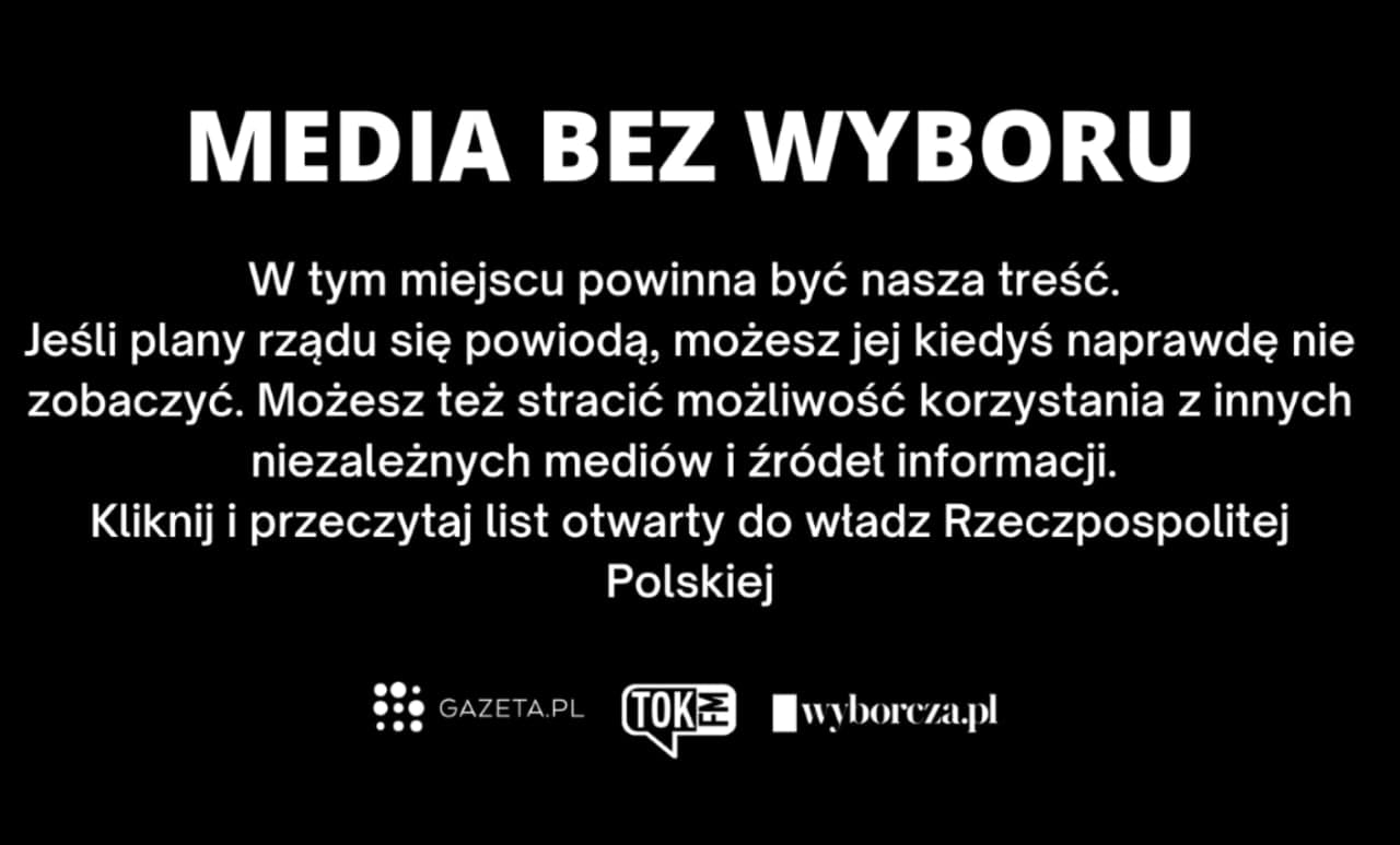 10 февраля издательства и редакции государства выступили против данного решения, сменив главную страницу на чёрный экран с воззванием «Ваш любимый сайт должен быть здесь» и открытым письмом властям Польши и лидерам политических партий.
