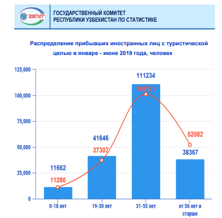 Количество иностранных граждан, посетивших Узбекистан по итогам января-июня 2019 года, составило 3694,6 тысяч человек. Данный показатель возрос, по сравнению с соответствующим периодом прошлого года, на 35,7%