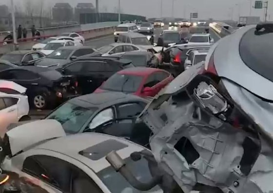 О первом столкновении на скоростной автомагистрали Синган сообщалось около 07:00, после чего в остановившиеся автомобили врезались десятки других машин.