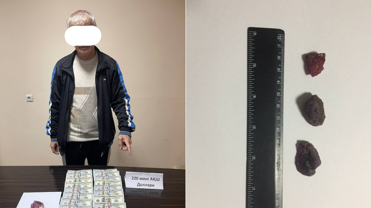 Х.Х., М.С. и другие лица были пойманы на месте при незаконной передаче одной единицы природного камня (фактическая стоимость 30 млн сумов) за $220 тысяч, помимо которого в качестве вещдоков было изъято в общей сложности четыре природных камня и ртуть.