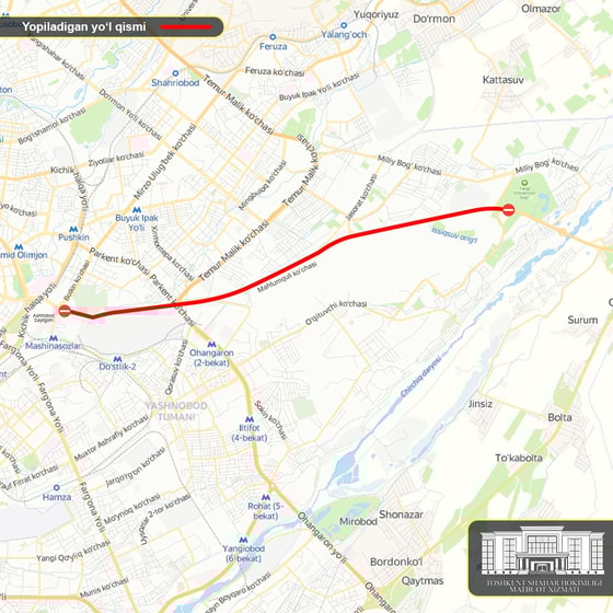 В четверг с 07:00 до 09:00 будет перекрыта улица Махтумкули от пересечения с улицей Боткина до парка «Янги Узбекистон».