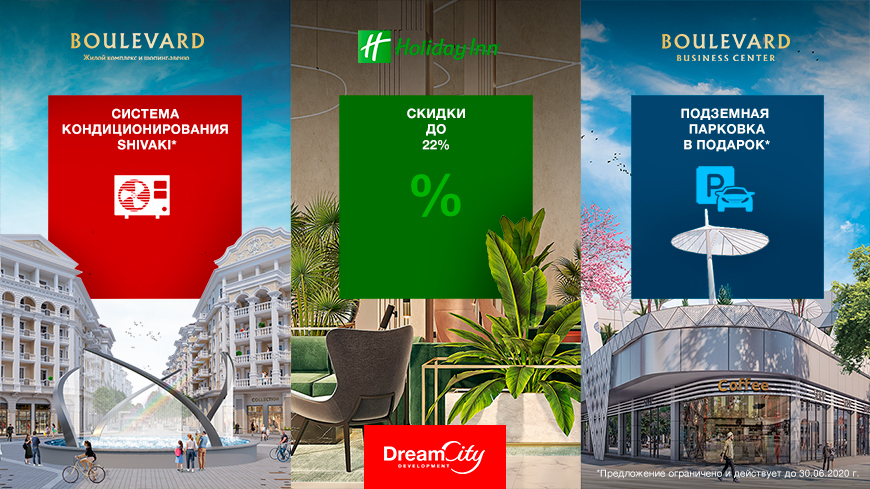 Также офисные помещения площадью от 72 до 1315 м2 представлены в доме №8 жилого комплекса Boulevard, в котором располагается пространство нового формата — гостинично-офисный комплекс знаменитой международной сети отелей Holiday Inn by Intercontinental Hotels Group. Современные продуманные офисы прекрасно подойдут под организацию рабочего пространства и сейчас доступны со скидкой до 22%.