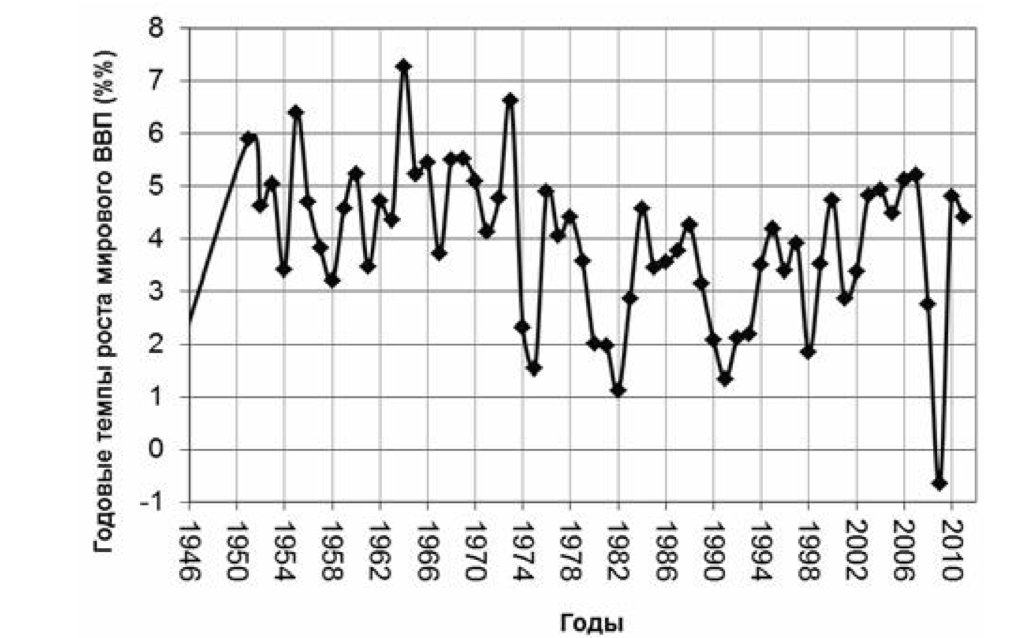 После «экономического чуда», в 20 веке подобные высокие и устойчивые темпы роста в экономиках стран не были зафиксированы. Более того, рост мировой экономики за последние 30 лет не превышал 5% (кроме периода 2004 – 2008 гг.), в то время как во второй половине 20 века мировая экономика демонстрировала рост, который часто превышал 5%. Несмотря на то, что сегодня страны обладают лучшими, чем 40-50 лет назад условиями для бизнеса, технологиями и опытом, современными мышлением и знаниями, открытым и свободным рынком, экономики стран не демонстрируют таких высоких показателей темпов роста, которые имели место во второй половине 20 века (см. Таблицу).