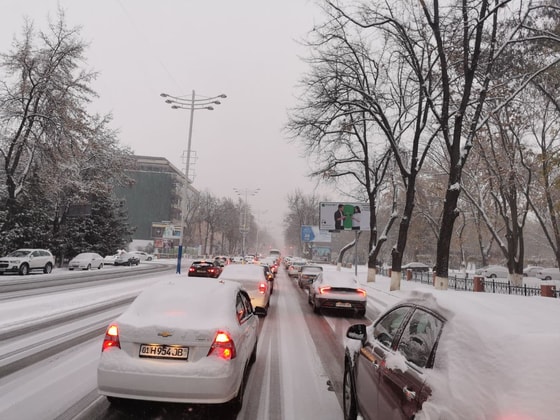 Напомним, что 18 ноября во время первого снега большинство перекрестков в Ташкенте оказались в пробке, оцененной в 10 баллов. Ожидается, что в 21:00 уровень трафика снизится до 4 баллов (желтый уровень), а в 22:00 – до 3 баллов (зеленый уровень).