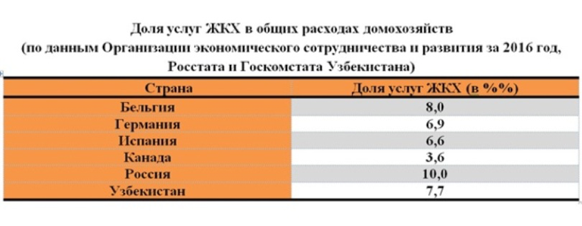 Говоря о необходимости либерализации цен, почти всегда используется аргумент о том, что у нас самые низкие тарифы, в частности, на электроэнергию. В сообщении Министерства финансов приводятся следующие данные о тарифах на электроэнергию для населения: в Узбекистане — 2,9 цента; в Российской Федерации — в среднем 5,8 цента; в Казахстане — 4,6−7,6 центов в зависимости от объемов потребления; в Кыргызстане — 1,1−3,2 центов в зависимости от объемов потребления; в Таджикистане — 1,8 центов.