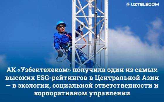Sustainable Fitch (Барселона) присвоило АК «Узбектелеком» ESG-рейтинг с совокупным баллом 73, что является самой высокой оценкой в Центральной Азии. Это отражает в целом положительную оценку деятельности АК «Узбектелеком» с точки зрения экологических и социальных факторов, а также его отличного профиля корпоративного управления.