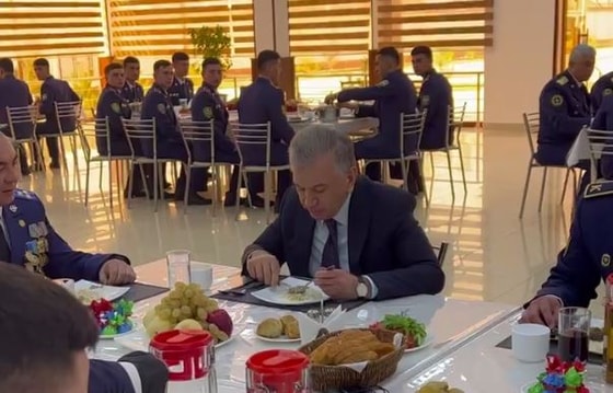 Глава государства посетил Высшее военное авиационное училище в Карши. В том числе, он побеседовал и пообедал вместе с курсантами и офицерами.