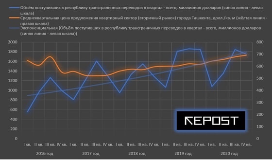 Поддержку рынку жилья оказывают и денежные переводы из-за границы. Наблюдается восстановление объёма поступлений денежных средств от трудовых мигрантов. Ранее озвученные прогнозы по сокращению объёмов переводов в Узбекистан оказались более пессимистичными.